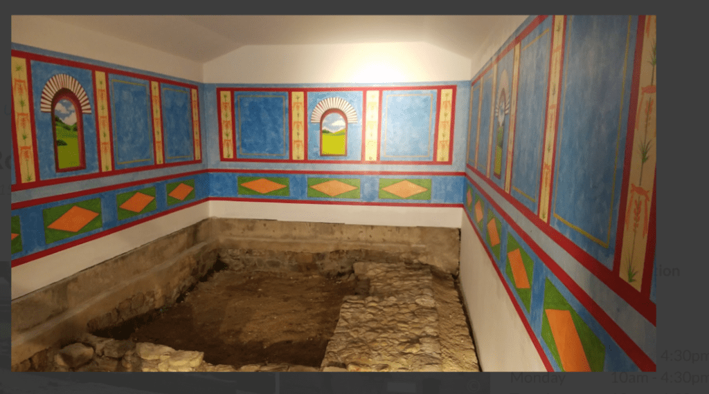 2019: A colourful recreation of the bathhouse at Binchester.